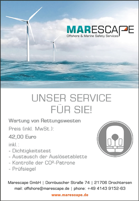 Angebot für die Wartung von Rettungswesten. www.marescape.de
